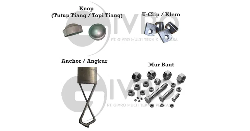 Aksesoris inilah bagian pendukung dari berdirinya sebuah Pagar BRC. Tiap tiap aksesoris memiliki fungsinya masing masing terhadap pagar itu sendiri. Ada berapa banyak sih aksesoris dari pagar brc ? apa saja sih? Simak daftar di bawah ini apa saja bagian dari aksesoris pagar brc itu? Apa Saja Aksesoris Pagar BRC?